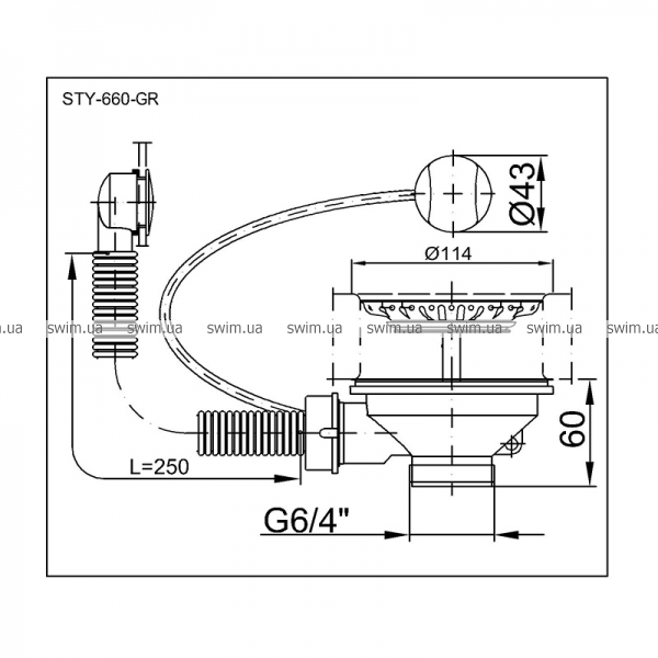 - Водослив для гранитных моек 6/4"
