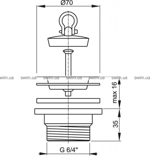 Водослив сифона для мойки 6/4" с нержавеющей решеткой Ø70 A33
