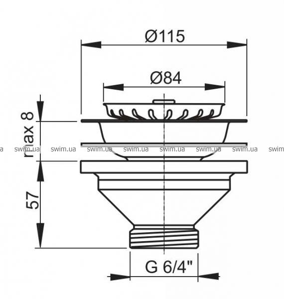 Водослив сифона для мойки 6/4" с нержавеющей решеткой Ø115 A37