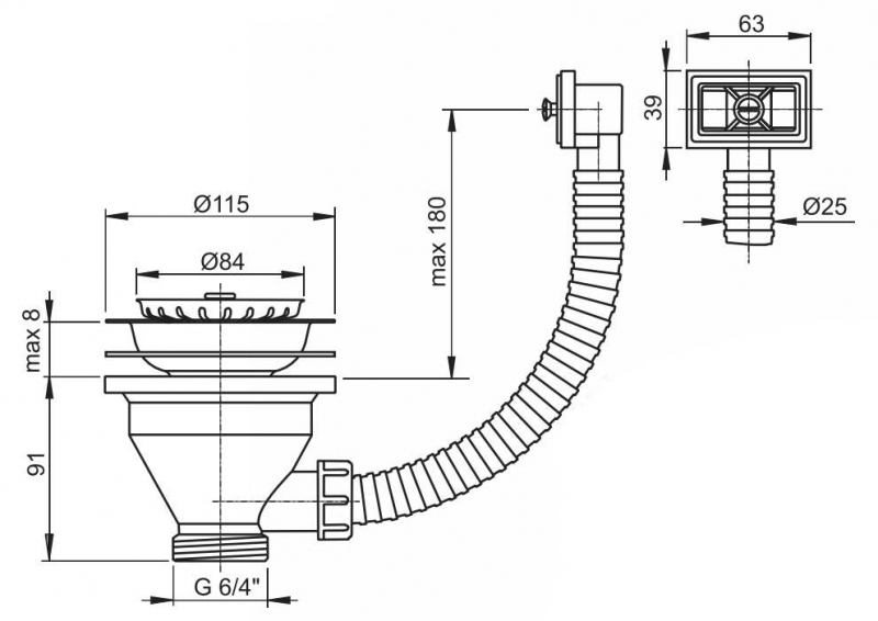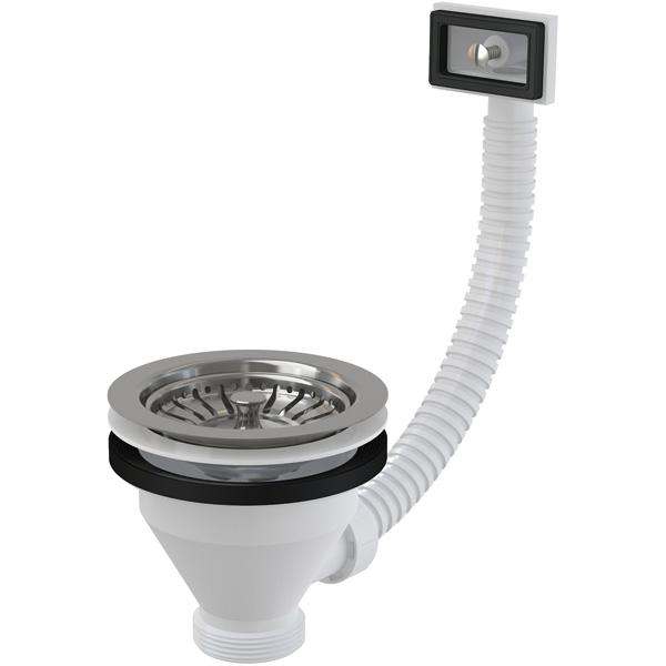 Водослив сифона для мойки 6/4" с нержавеющей решеткой Ø115 и гофропереливом A38