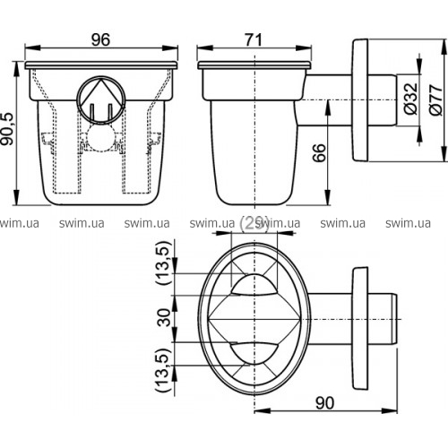 - Подключение к сливной трубе Ø32 мм