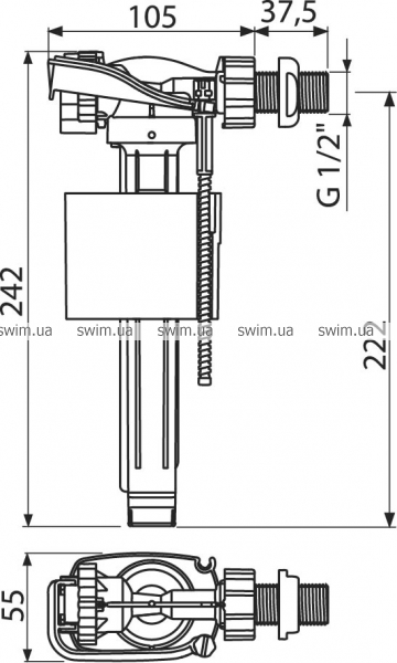 Впускний механізм Alca Plast A150 3/8" з бічним підведенням