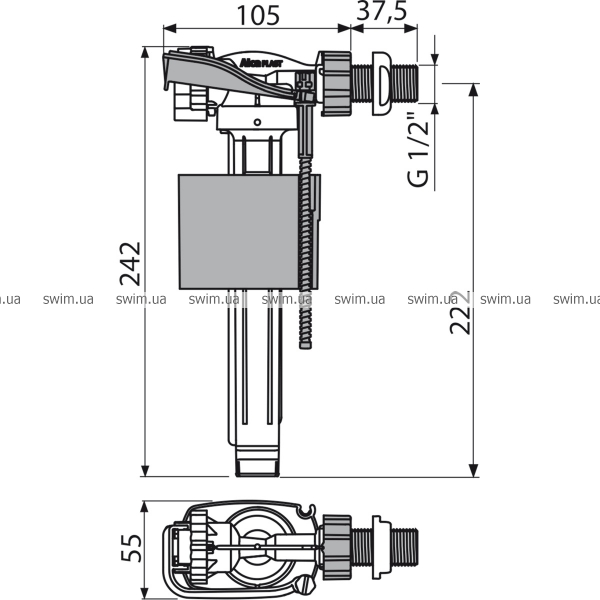 Впускний механізм Alca Plast A160 1/2" з бічним підведенням