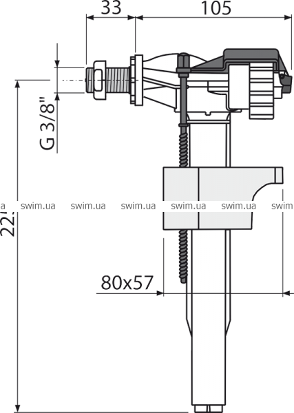 A16M-3/8" - Впускной механизм с боковой подводкой и металлической резьбой для пластиковых бачков и скрытых систем инсталляции