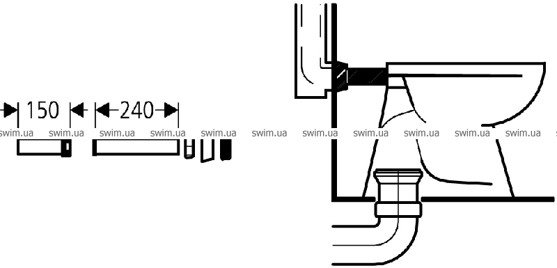 - Соединяющая трубка от смывной трубы встроенного смывного устройства 6-9 л и встроенного смывного бачка к напольному унитазу