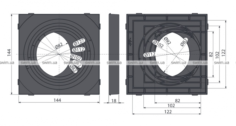 - Размеры (шт.) 144×144×18 мм