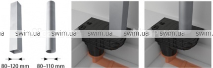 - Для подключения круглых и квадратных водостоков