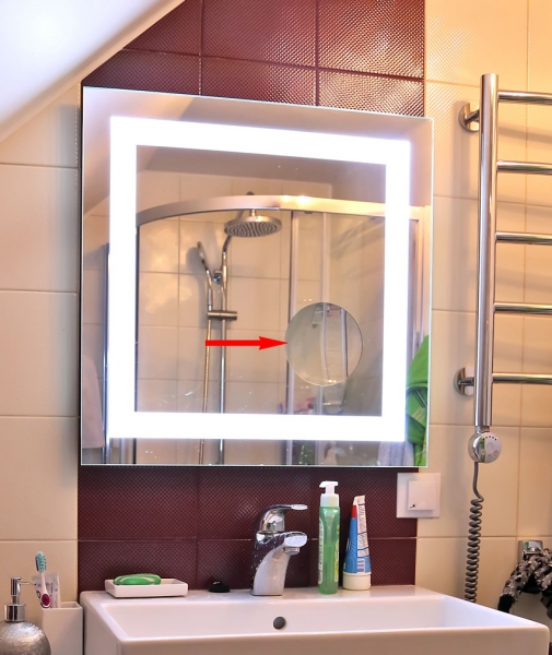 Встроенное косметическое зеркало J-mirror 5X увеличение без подсветки