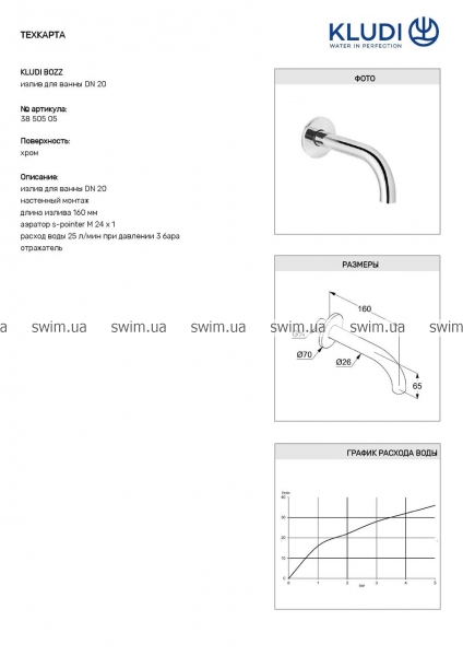 Вилив для ванни Kludi DN 20 Bozz 3850505
