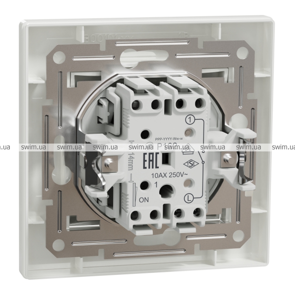 Електричний вимикач Schneider Electric Asfora EPH0100121 білого кольору - це готовий до встановлення виріб. Вимикач одноклавішний. Спосіб кріплення - гвинти або монтажні лапки. Номінальний струм вимикача 10 A, потужність 2300 Вт. 83 мм, 83 мм і 43 мм - це ширина, висота і глибина відповідно, а його глибина виступу 15 мм. Можливий прихований монтаж. Глянцева поверхня створює відчуття елегантності в кімнаті. Ступінь захисту IP20. Клеми безгвинтові. Вимикач виготовлено з ABS (акрилонітрил-бутадієн-стирол) пластику. Має мідний провідник. Він отримав сертифікати NF, TSE, VDE. Повністю відповідає стандарту IEC 60669-1. Має знак якості CE, UKR. Крім того, це екологічний продукт преміум-класу. Не містить ртуті. Оновлені вимикачі Asfora тепер мають менші, більш компактні механізми, профільовані супорти, покращені отвори для проводів і затискачі, монтажні лапки з поворотною пружиною, що покращує якість і функціональність цих вимикачів. Продукція Asfora виготовлена з високоякісних матеріалів, які не жовтіють з часом. Витончений та елегантний дизайн ідеально гармонує практично з будь-яким інтер'єром.