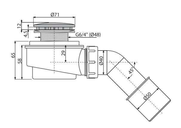 A471CR- Ø50 ВЫПУСКНОЙ КОМПЛЕКТ ДЛЯ ДУШЕВОГО ПОДДОНА, ХРОМИРОВАННЫЙ ПЛАСТИК