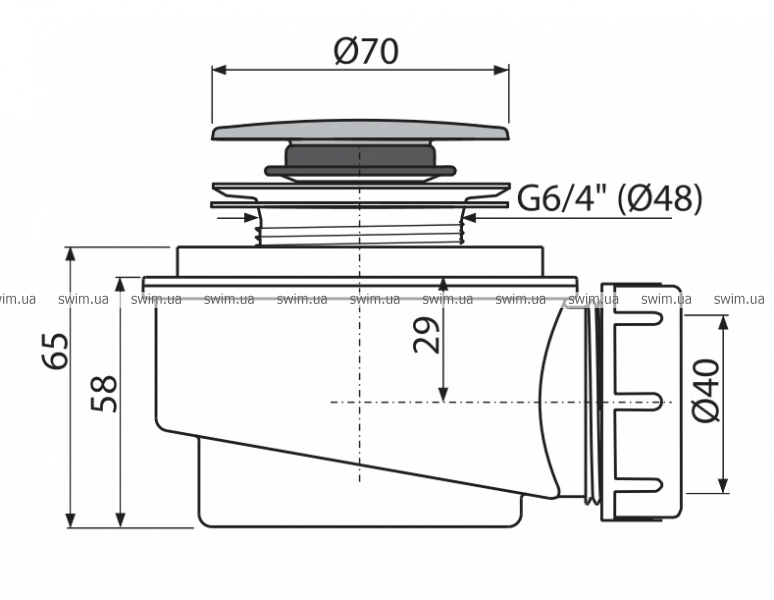 • Для душевых поддонов со сливным отверстием Ø60 мм