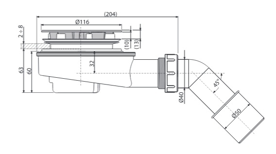 - Для слива воды из душевых поддонов