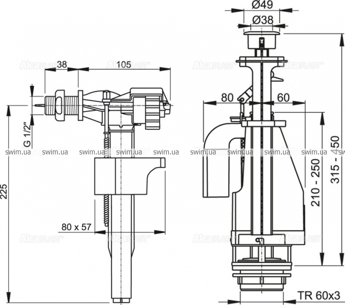 - Конструкция позволяет регулировать высоту механизма в зависимости от высоты бачка