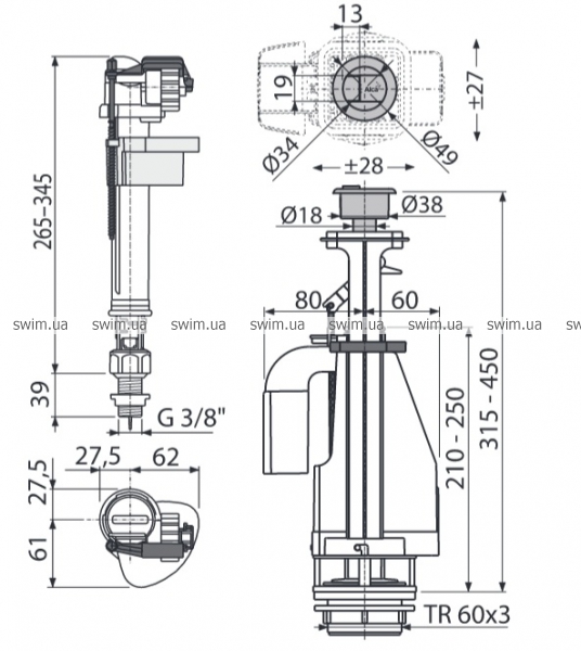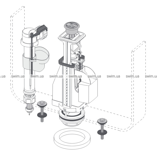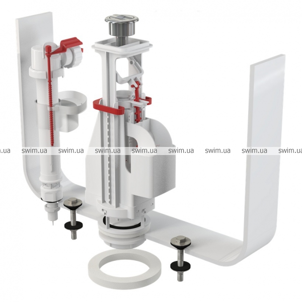 - Конструкция позволяет регулировать высоту механизма в зависимости от высоты бачка