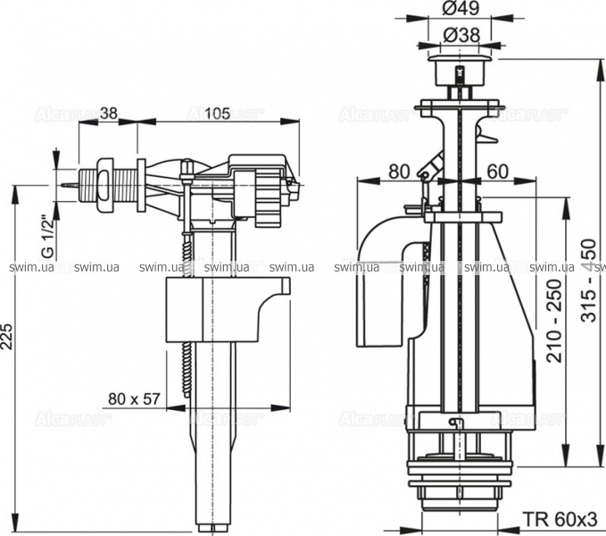 Действие впускных механизмов ALCAPLAST основано на гидромеханическом прин-ципе закрывания впускного клапана. Апробированный дизайн и высокое качество материалов, используемых для производства изделий, повышают точность наполнения и снижают чувствительность к изменениям давления воды в водопроводной сети.
