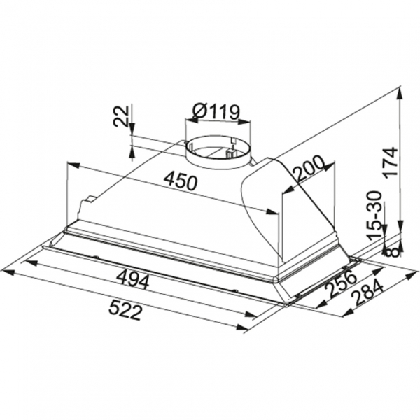 - Диаметр отверстия для отвода воздуха: 150 мм