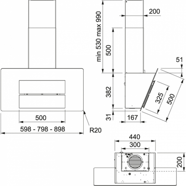 - Диаметр отверстия для отвода воздуха: 150 мм