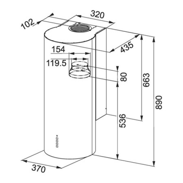 - Ширина вытяжки: Ø 370 мм