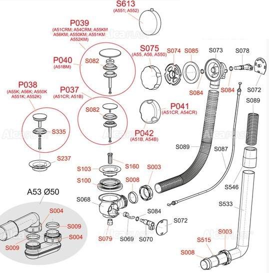 Сифоны для ванн A55K, A56K