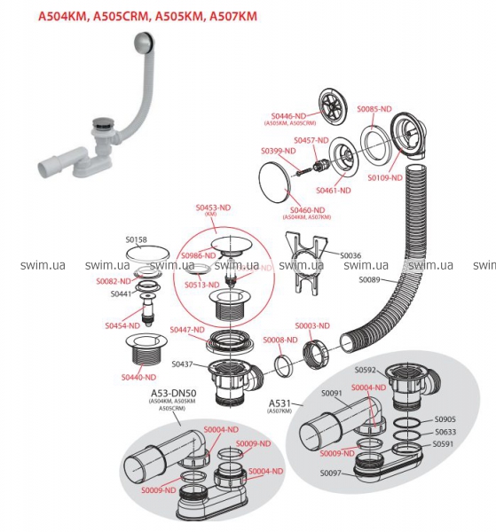 Alcaplast S0525-ND. Запасная часть к сифонам для ванны (A504KM, A505CRM, A505KM, A507KM) изготовленная из высококачественных материалов в Чехии.