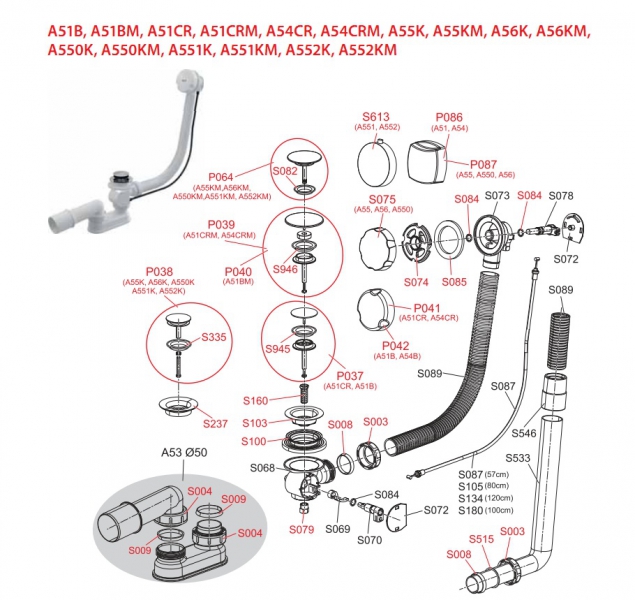 Alcaplast S613 металл. Запчасть к сифонам для ванны изготовленная из высококачественных материалов в Чехии. Поворотная стальная накладка.