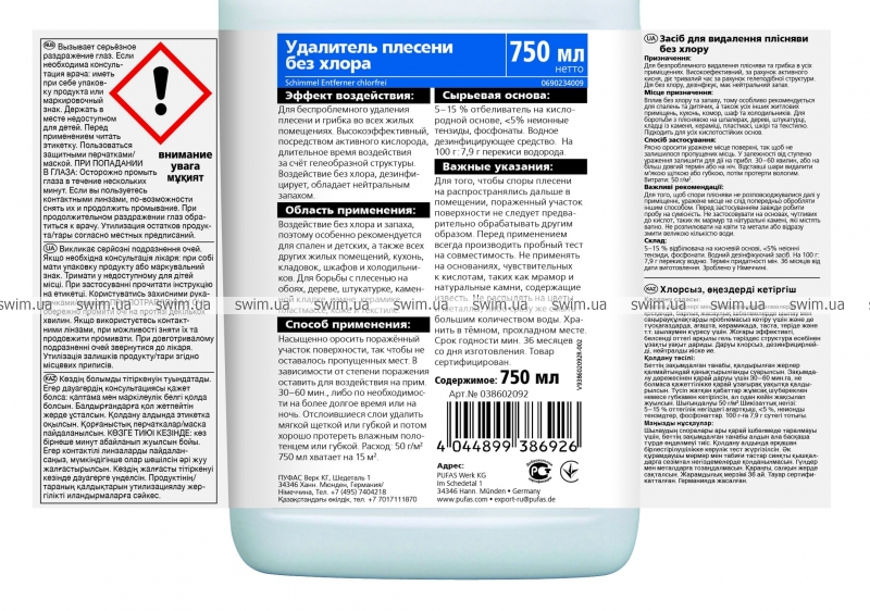 Засіб для видалення цвілі дезінфікує, має нейтральний запах. Підсилює блиск поверхонь із нержавіючих сплавів. Застосовуємо для обробки душових фіранок та перегородок. Без проблем допоможе видалити плісняву з практично будь-яких поверхонь.