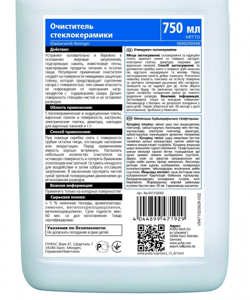 Засіб для догляду та очитки стеклокераміки Glutoclean 4017, 750 мл