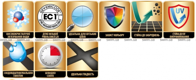 Підвищений захист від розвитку цвілі і мікроорганізмів, а також відсутність вапняних осадів забезпечують естетичний вигляд швів в приміщеннях і назовні, особливо в місцях, які знаходяться під впливом вологи. Завдяки ефекту відштовхування води, а також застосуванню технології Hydrodur® затирку відрізняє підвищена стійкість до проникнення води і забруднень. Можна застосовувати на терасах і балконах, теплих підлогах, а також для розшивки швів тонких плиток та плит (≤ 4 мм).