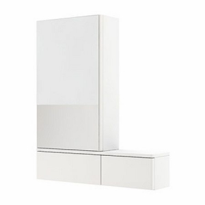 - Под зеркалом дополнительная закрытая полка с механизмом push to open