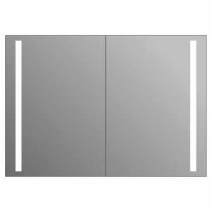 - Дверца шкафчика имеет толщину 19 мм. Обе поверхности дверцы являются зеркалами. Дверца может иметь встроенную LED подсветку, подогрев от запотевания, встроенные часы и увеличительную линзу.
