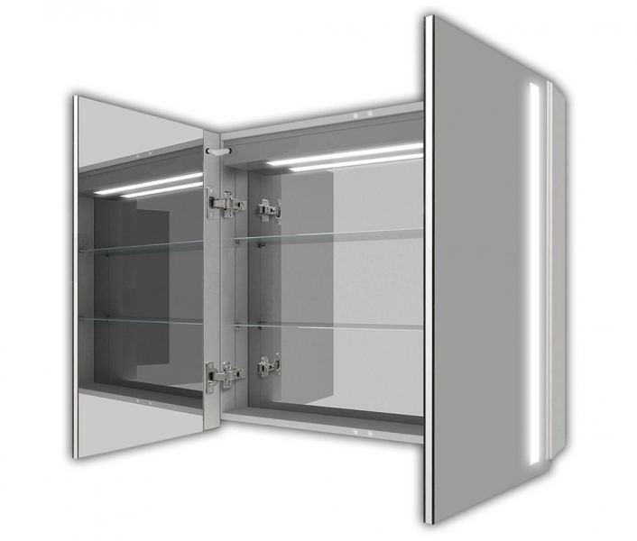 Biaggio - это стильный двухстворчатый зеркальный шкафчик со встроенной LED подсветкой. Прочный и красивый алюминиевый корпус. Подсветка встроена в дверцы, толщина которых составляет 19 мм. Обе стороны двух створок и задняя стенка внутри шкафчика являются зеркалами. Пять зеркальных поверхностей - это очень удобно и очень красиво!