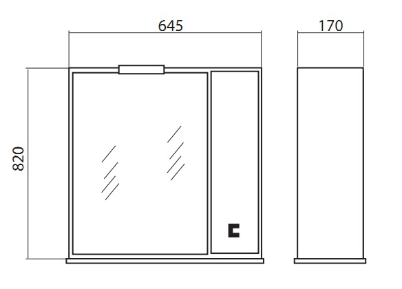 Зеркало без подсветки Akvarodos "Мобис" 65 с пеналом (R)