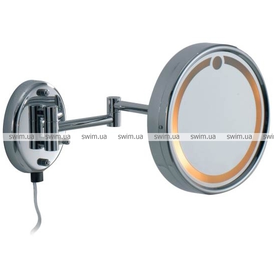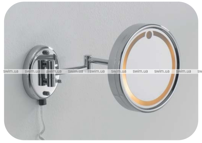 Зеркало подвесное для ванной комнаты с подсветкой Colombo Design B9966 в хромированном металлический корпусе изготовлено из высококачественного стекла. Имеет 2-х кратное увеличение, белую светодиодную подсветку и большую свободу регулировок положения шарнирного кронштейна.