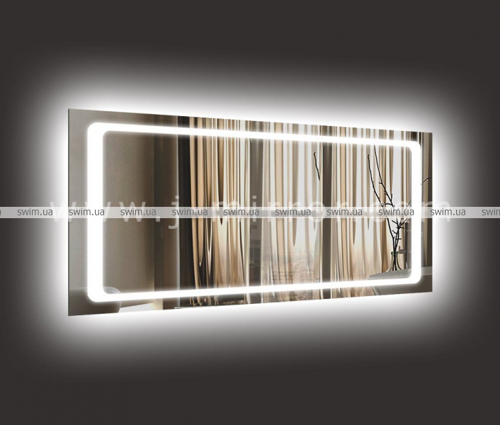 Зеркало Adele с LED подсветкой и дополнительной контурной подсветкой. Световая полоса по периметру зеркала равномерно и ярко светится.