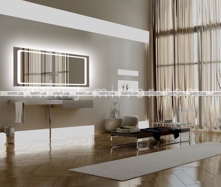- Дополнительная подсветка исходит с обратной стороны зеркала, красиво освещая помещение мягким свечением