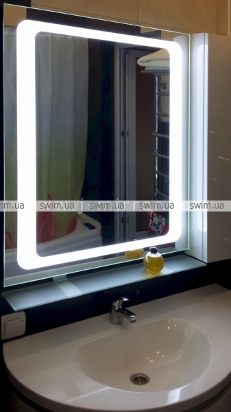 Зеркало со светодиодной подсветкой Adele серии LED ST. По умолчанию на данное зеркало не устанавливается рама по его периметру. При этом в качестве опции Вы можете заказать один из нескольких вариантов алюминиевой рамы.