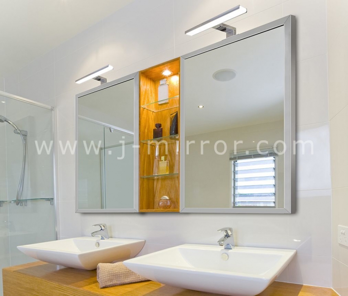Зеркало в алюминиевой раме alu 001 с внешним светильником Consol 02: сочетание современного стиля high-tech и высококачественных материалов. Анодированная алюминиевая рама надежно защищает зеркало по периметру. Ширина рамы на лицевой стороне зеркала - 19 мм. LED светильник Consol 02 выполнен из хромированного алюминия и ударопрочного пластика ABS. Размер светильника 300x108x40 мм. Мощность 5Вт, цветность 4000K.