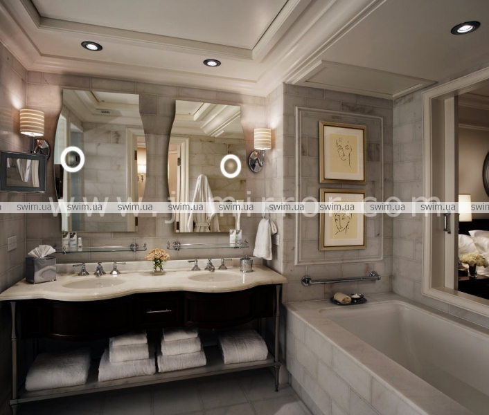 Зеркало Ambra со встроенным косметическим зеркалом. Вы можете выбрать линзу с 3-х или 5-ти кратным увеличением с дополнительной подсветкой вокруг линзы, либо без нее.