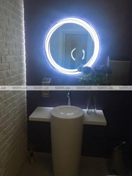 Зеркало со светодиодной подсветкой Celeste. Переплетение световых потоков по окружности этого зеркала вызывает восхищение. Благодаря современной технологии LED подсветки зеркало имеет тонкую конструкцию. Толщина в световой зоне составляет всего 24 мм, при этом все световые участки равномерно светятся. Вы можете заказать свой индивидуальный диаметр!