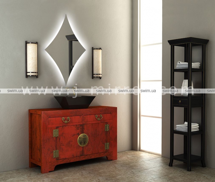 Зеркало Diamond с контурной подсветкой амбилайт. Подсветка исходит с обратной стороны зеркала, красиво освещая помещение мягким свечением.