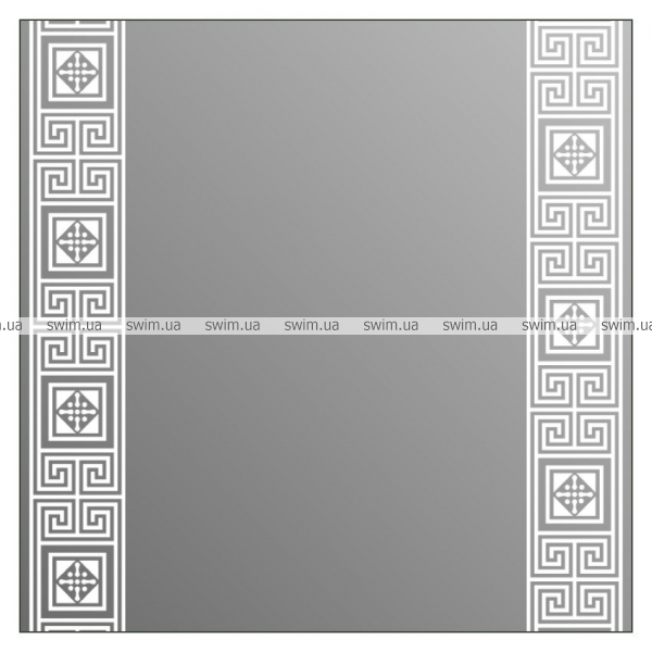 Зеркало со светодиодной подсветкой Dionisia. В зеркале гармонично сочетаются классический греческий орнамент и современная технология LED подсветки. Орнамент равномерно светится на зеркальной поверхности. Края зеркала защищены профилем из анодированного алюминия. Зеркало отвечает стандарту IP44.