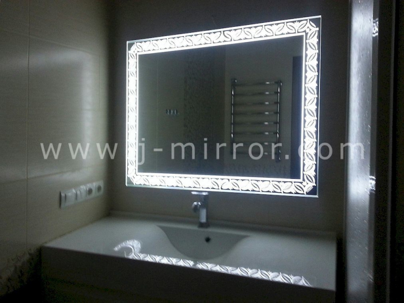 - Наше уникальное преимущество: световая область зеркала может иметь большие размеры и произвольную форму. При этом толщина зеркала в световой области составляет лишь 20мм, и весь световой рисунок равномерно светится.