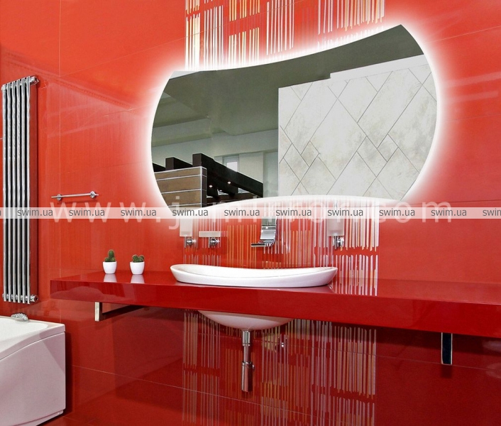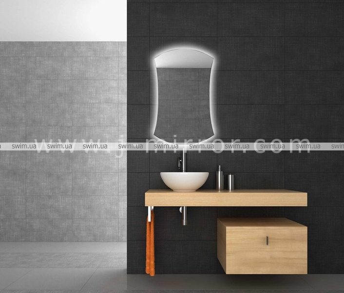 Зеркало Idea с контурной подсветкой амбилайт. Подсветка исходит с обратной стороны зеркала, красиво освещая помещение мягким свечением.