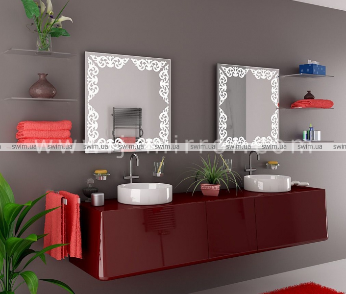 Зеркало со светодиодной подсветкой Isabella. Современная конструкция зеркала украшена красивым восточным орнаментом, который равномерно светится, создавая уют в Вашем доме. Края зеркального полотна защищены стильным алюминиевым профилем. Выберите размер зеркала, который идеально впишется в Ваш интерьер.