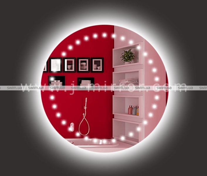 Зеркало LED Star 04 с точечной светодиодной подсветкой и дополнительной контурной подсветкой. Современный стиль и современная технология. Дополнительная подсветка исходит с обратной стороны зеркала, красиво освещая помещение мягким свечением.