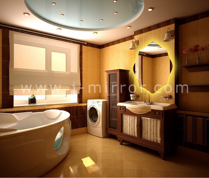 - Дополнительное цветное декоративное свечение по периметру зеркала. Эффект ореола. Настройка любого цвета при помощи пульта. Возможность динамического изменения цвета по программе