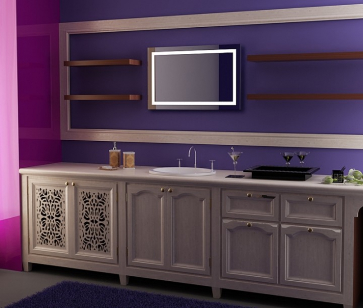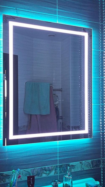 Зеркало со светодиодной подсветкой Livia серии LED ST. По умолчанию на данное зеркало не устанавливается рама по его периметру. При этом в качестве опции Вы можете заказать один из нескольких вариантов алюминиевой рамы.