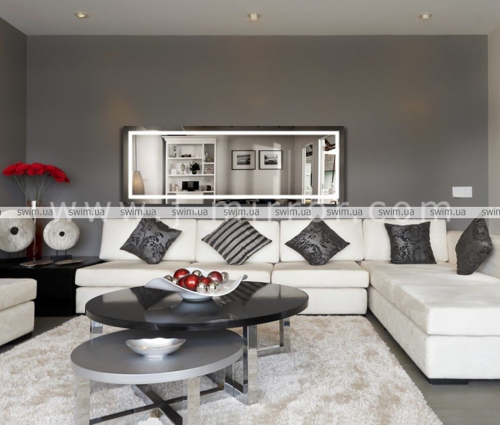 Зеркало со светодиодной подсветкой Livia XL серии LED ST. По умолчанию на данное зеркало не устанавливается рама по его периметру. При этом в качестве опции Вы можете заказать один из нескольких вариантов алюминиевой рамы.