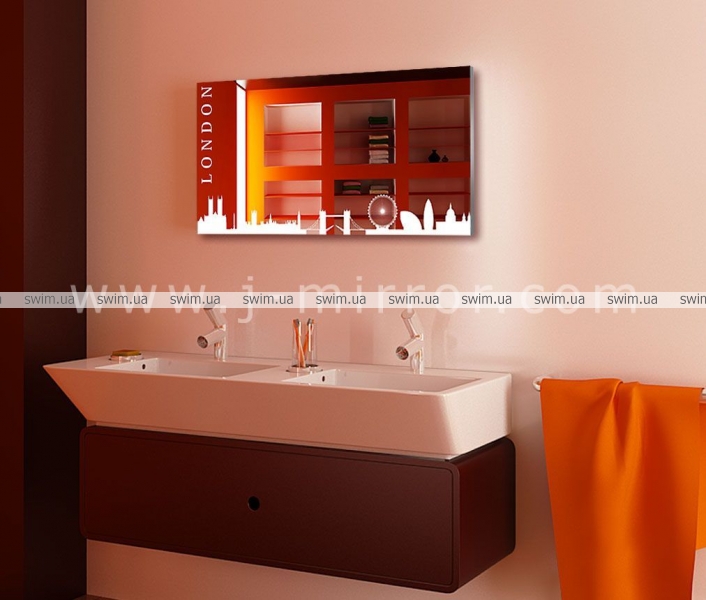 Зеркало со светодиодной подсветкой London. Ваш интерьер может быть украшен знаменитыми силуэтами Лондона. Этот уникальный дизайн реализован благодаря технологии LED подсветки компании Juergen. Зеркало соответствует стандарту IP44.